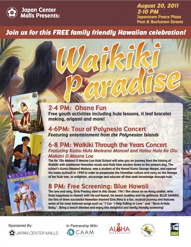 CAAM and the Japan Center Malls invite youᅠand your family to join in a FREE Hawaiian celebration featuring music, film, and arts & crafts.